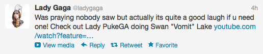 Check out this video of the self proclaimed “Monster” vomiting on stage while performing ‘Edge of Glory’ in Barcelona this past weekend.