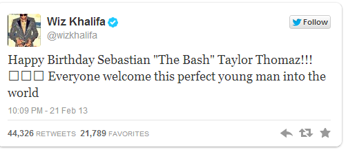 Yesterday evening, rapper Wiz Khalifa and his fiancé Amber Rose announced that the couple had finally given birth to their first child, a healthy young boy which they named Sebastian.