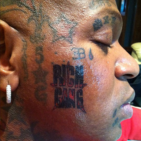 For reasons my brain can’t possibly fathom, one of Hip Hop’s more powerful executives, Cash Money Records CEO Brian “Birdman”Williams, recently decided to go ahead and add a few new tattoos to his already extensive facial collection in support of his various business ventures. (Pretty sure there’s less extreme ways to get your company names out there).